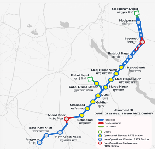 Il Primo Ministro indiano, Narendra Modi, ha inaugurato domenica 5 gennaio 2025 una sezione di 13 km del corridoio Delhi-Meerut Regional Rapid Transit System (RRTS), da Sahibabad nell'Uttar Pradesh a New Ashok Nagar in Delhi.