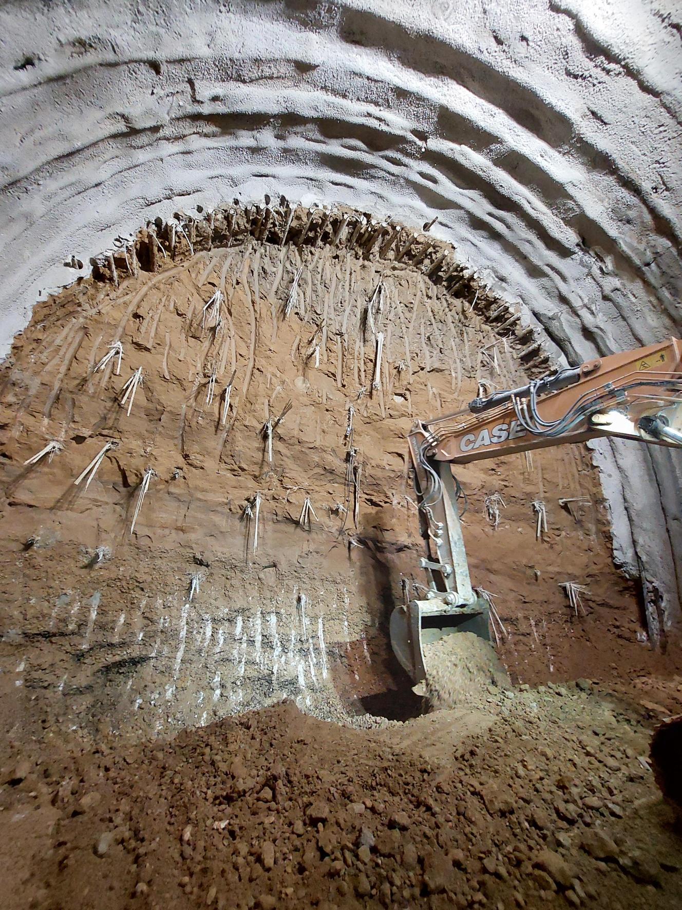 Lo scavo è stato condotto con metodo tradizionale, in presenza di condizioni geotecniche articolate. Infatti, per garantire la stabilità del fronte, sono stati adottati consolidamenti in avanzamento, interventi di presostegno mediante tubi metallici e tecniche di contenimento al contorno del cavo.