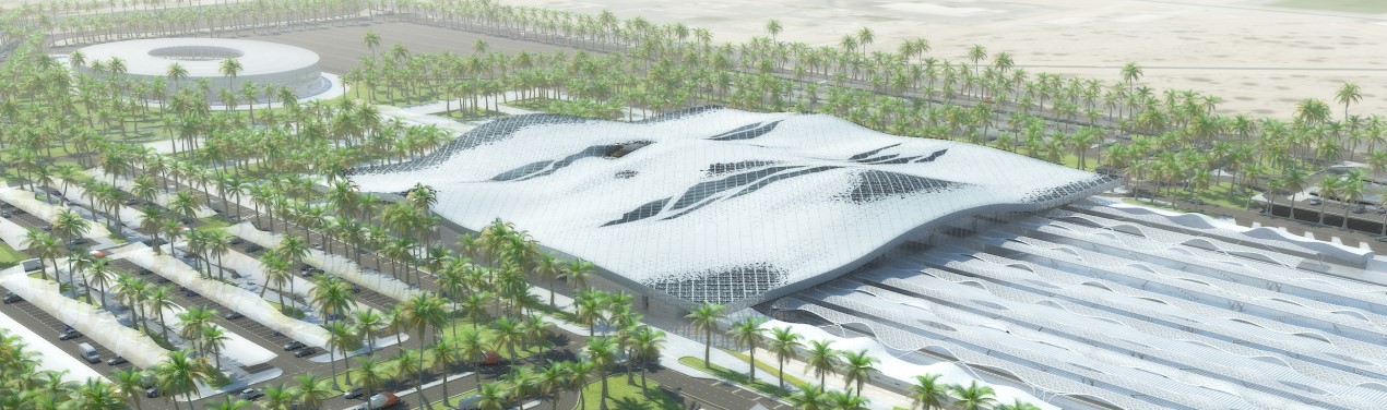Le dune del deserto che si fondono alle onde del mare hanno metaforicamente determinato l'identità della futura Stazione: la chiarezza e la trasparenza dell'acqua si fonde con le linee sinuose delle dune di sabbia originando un ampio spazio aperto coperto da una struttura metallica rivestita di pannelli in GRC che disegna linee curve e morbide, suggerendo l'idea di un paesaggio in continuo cambiamento. Il progetto, infatti, viste anche le dimensioni territoriali dell'intervento, intende essere un'unione armoniosa di paesaggio e architettura, con un linguaggio formale pulito e un'organizzazione funzionale chiara che orienta il viaggiatore e lo guida dall'ingresso alla biglietteria fino al treno.