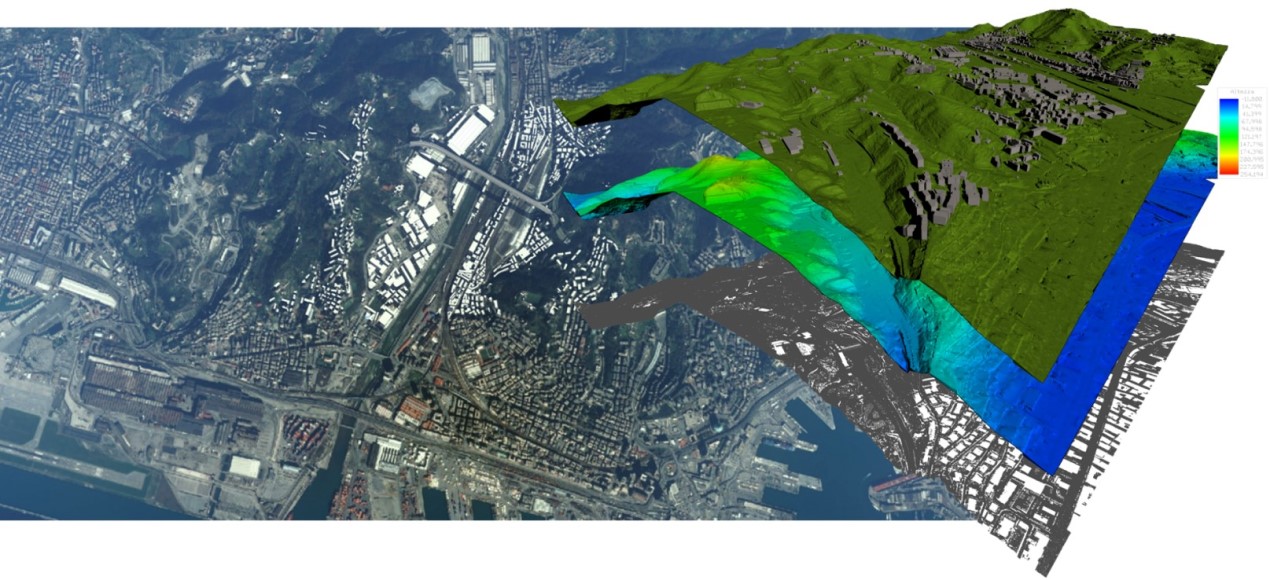 A seguito di una preliminare attività di rilievo attraverso voli aerei attrezzati con laser scanner è stato avviato un processo di scrematura e triangolazione della nuvola di punti così da poter ricostruire digitalmente il contesto in cui operare. Il modello digitale del solo terreno è stato poi arricchito con numerosi dettagli e informazioni attraverso la manipolazione e l’inserimento di shape file o di modelli tridimensionali appositamente predisposti. Per aumentare il dettaglio delle informazioni ricavabili dal modello digitale del terreno, il Digital Context così sviluppato è stato ulteriormente integrato con un draping delle ortofoto.